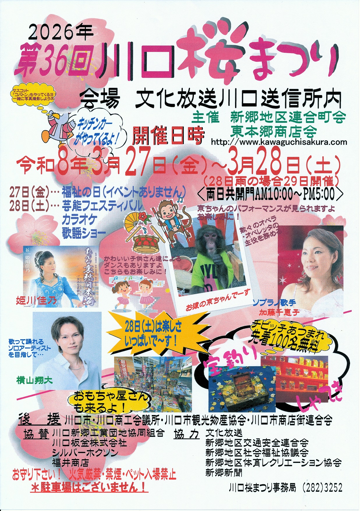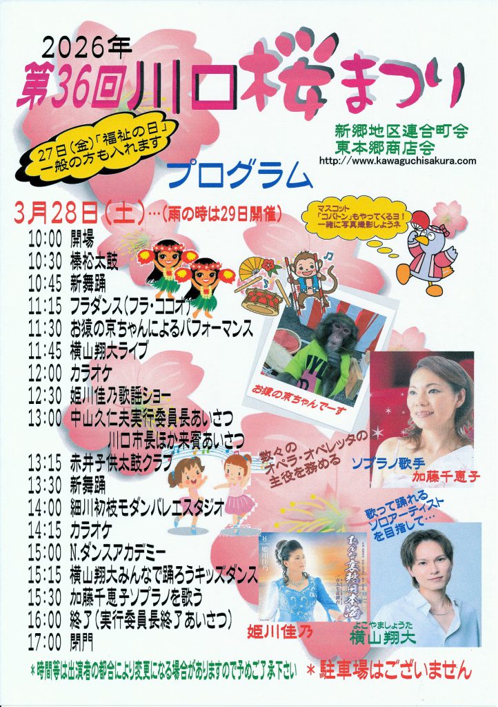 川口市の春の風物詩「川口桜まつり」が、2026年も文化放送川口送信所内を会場に開催されます。 今年で36回目を迎えるこの祭りは、地域住民が世代を超えて集い、芸能・食・遊びを楽しむ温かなイベントとして親しまれてきました。