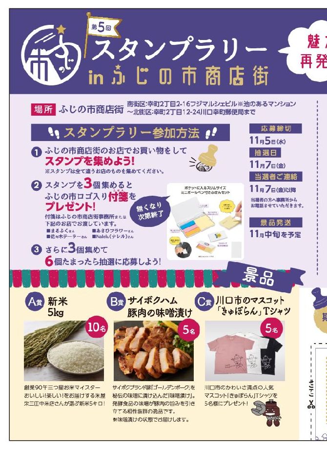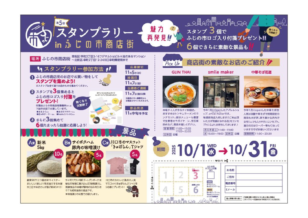 スタンプ3個でふじの市ロゴ入り付箋プレゼント!!6個でさらに素敵な景品も
